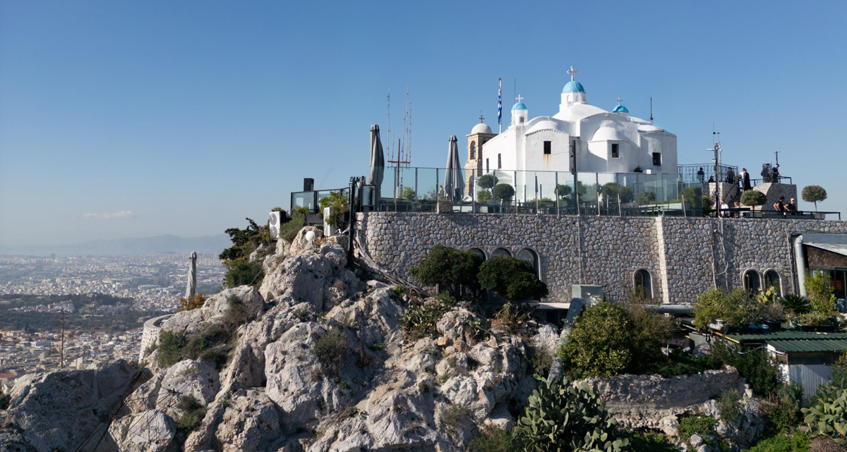 A limestone peak rising 277 meters above the sea, it offers a view that locals consider sacred: the entire city unfolding like a living map, the Acropolis glowing in the distance, and the sea shimmering at the horizon.
